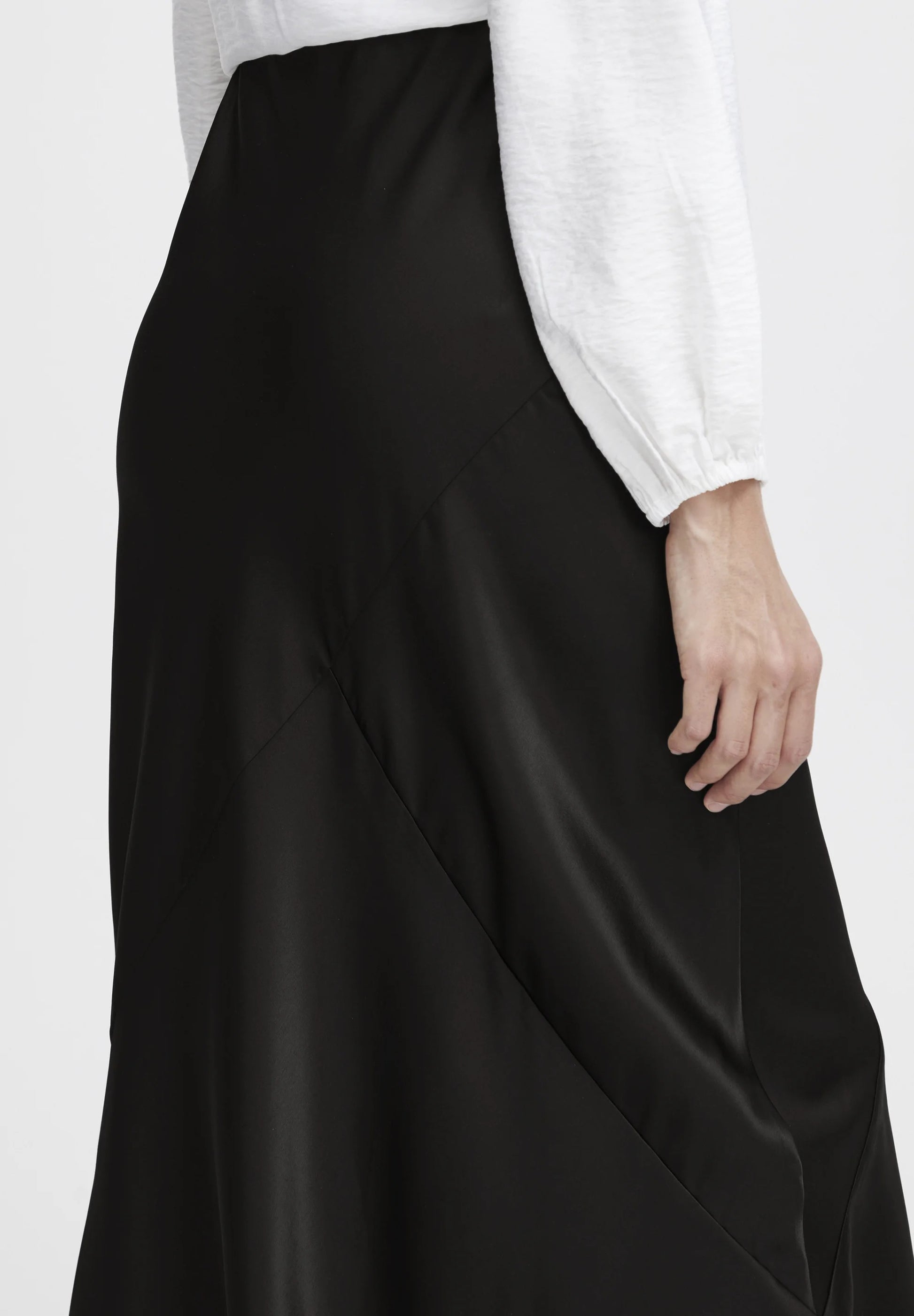 b.young Bydolora Satin Bias-Cut Midi Skirt - Black