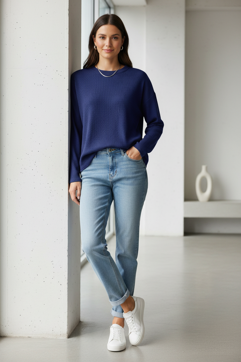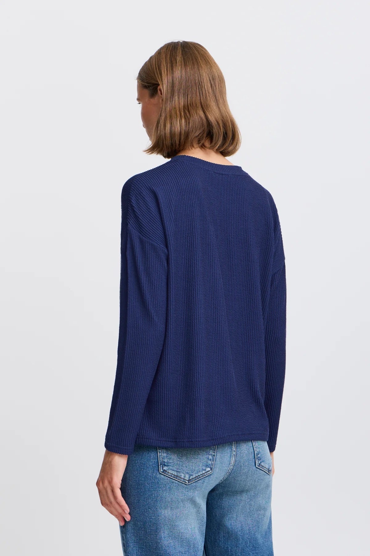 b.young Bypesina Textured Long-Sleeve Top - Medieval Blue