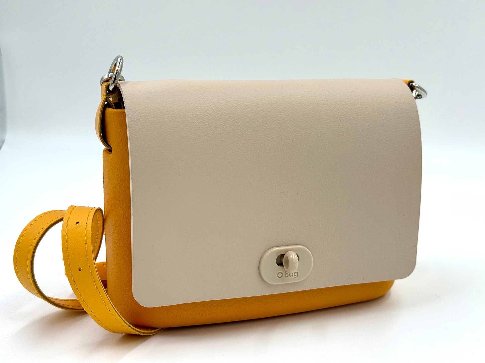 O bag pocket crossbody – lemon yellow body, off-white lid, twist lock