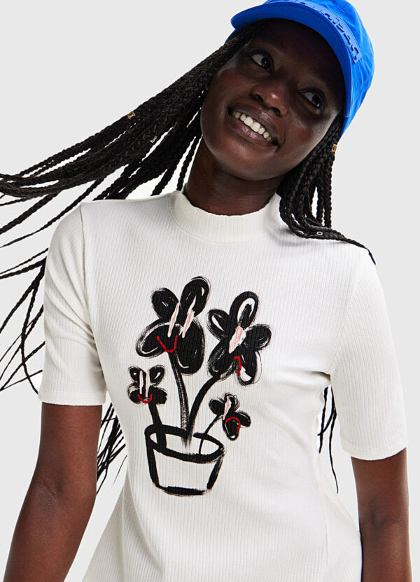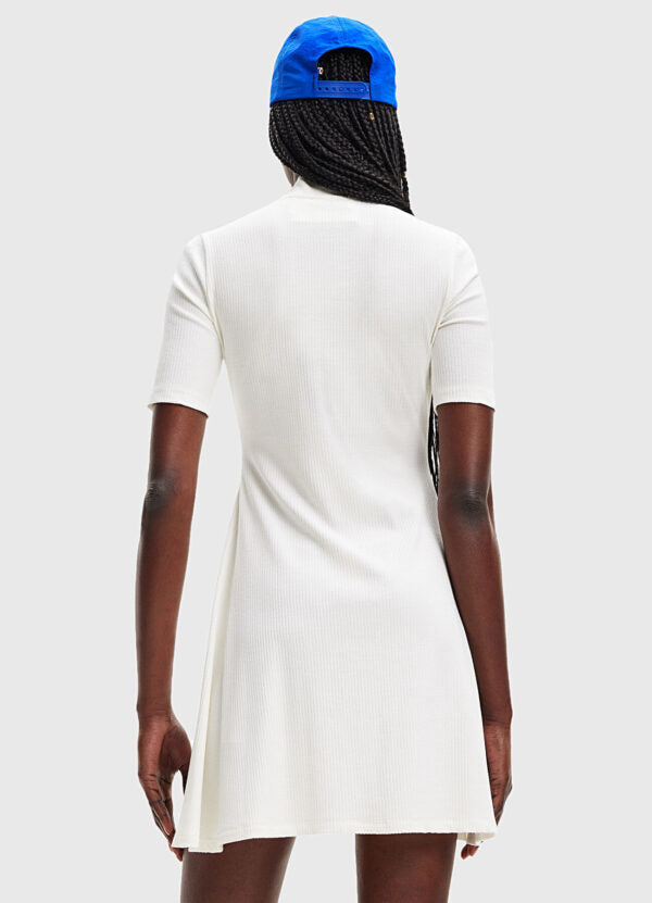 Desigual Ribbed Floral Embroidery Mini Dress – White